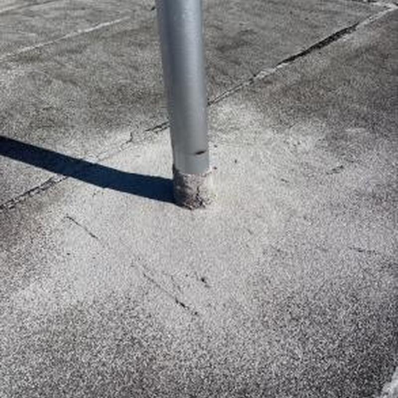 Thompson Roofing Services inspected a flat membrane roof leak for a restaurant in Clemmons, NC. The team identified multiple issues, including tears, bullet holes, and worn sealant around roof pipe penetrations.