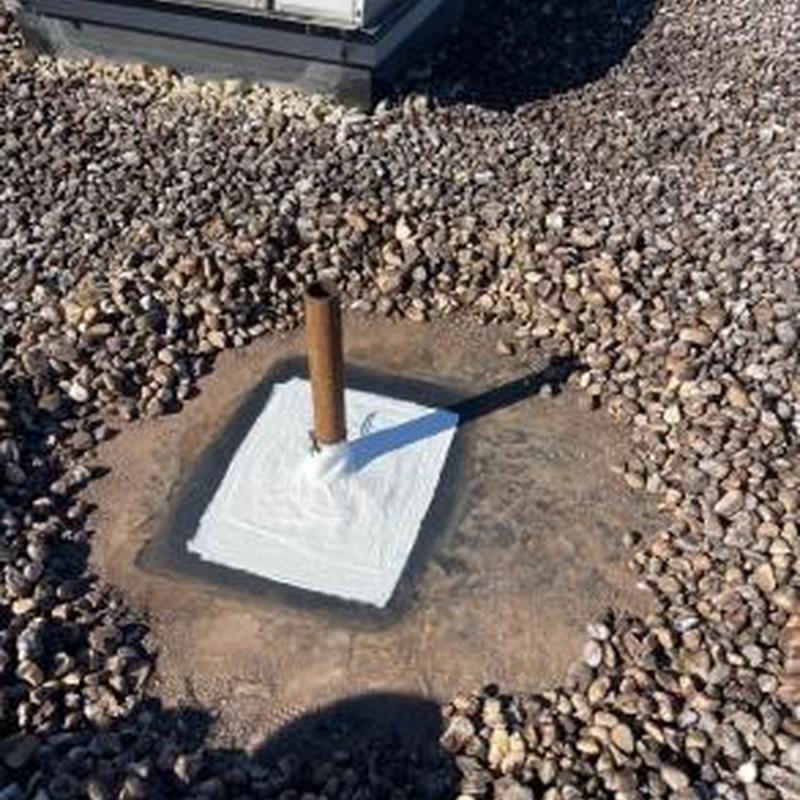 Thompson Roofing Services inspected roof vent pipes and membrane in High Point, NC. Technicians confirmed all vent pipes were sealed correctly and found one cut in the membrane. The team repaired the damaged area to maintain roof integrity.