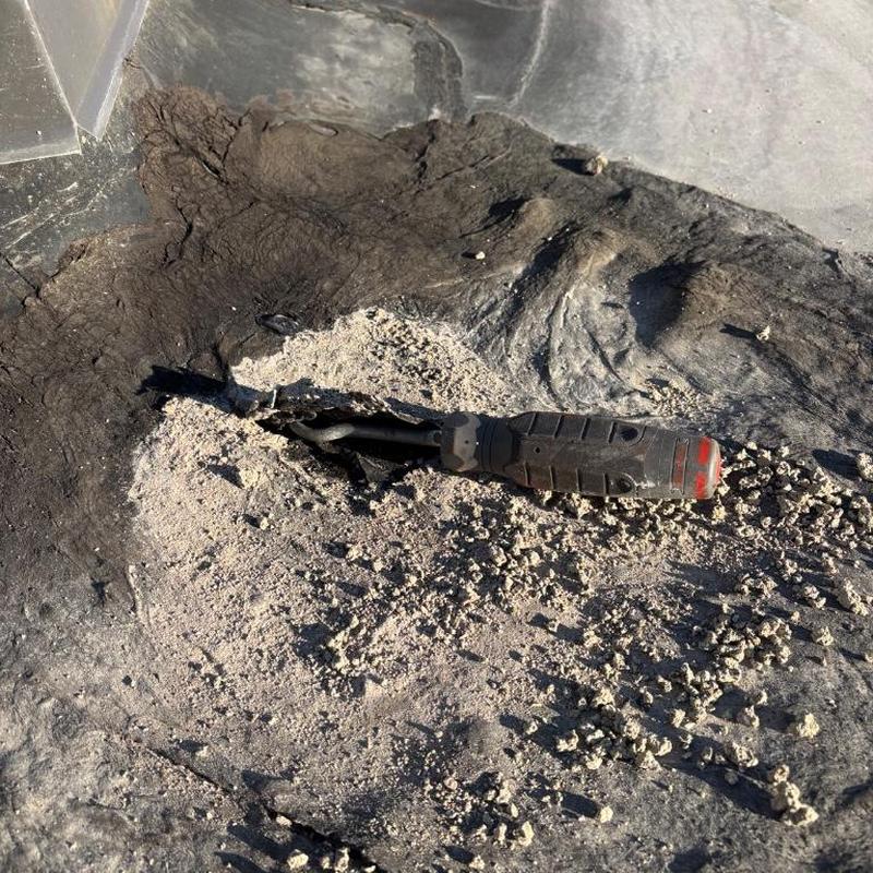 Thompson Roofing Services completed a roof inspection and repair in Biscoe, North Carolina. The team identified a foam coating with a tar base layer. Technicians cut into the foam section to access and repair the damaged area, ensuring the roof maintained its structure and function.