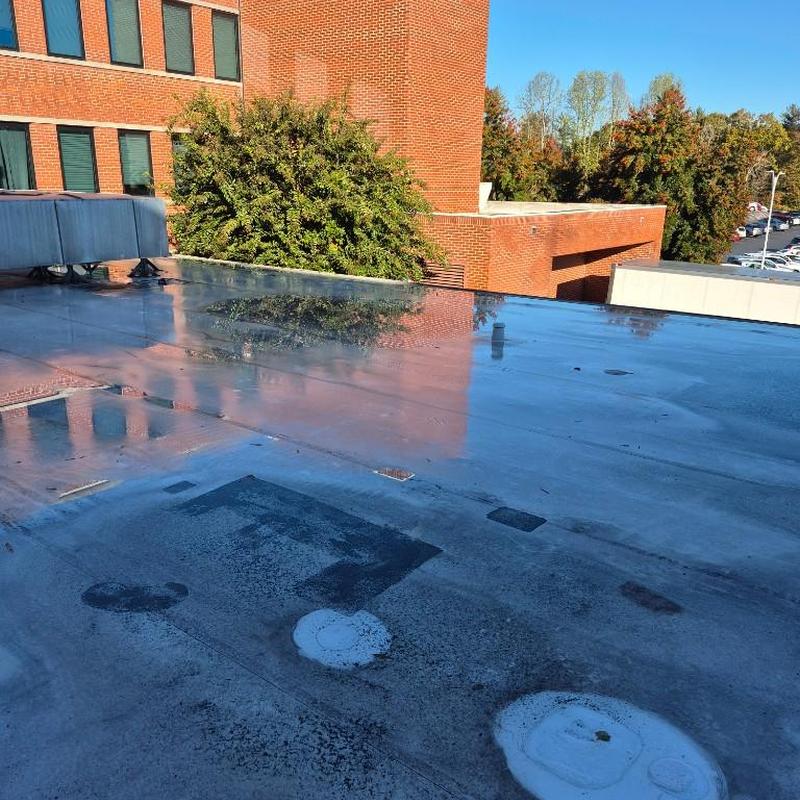 Thompson Roofing Services performed flat roof maintenance in Mount Airy, NC. The team removed debris and addressed issues flagged by a building inspector. Regular upkeep helps extend the lifespan of flat roof membranes, including PVC, TPO, and EPDM systems. Proactive care reduces damage and supports long-term performance.