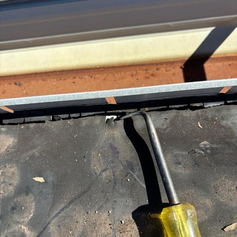 Thompson Roofing Services repaired a roof leak in Asheboro, NC. The technician inspected the area and identified a drip edge with a faulty cold weld. This defect allowed water to enter the roofing system. The issue was addressed to prevent further moisture intrusion.