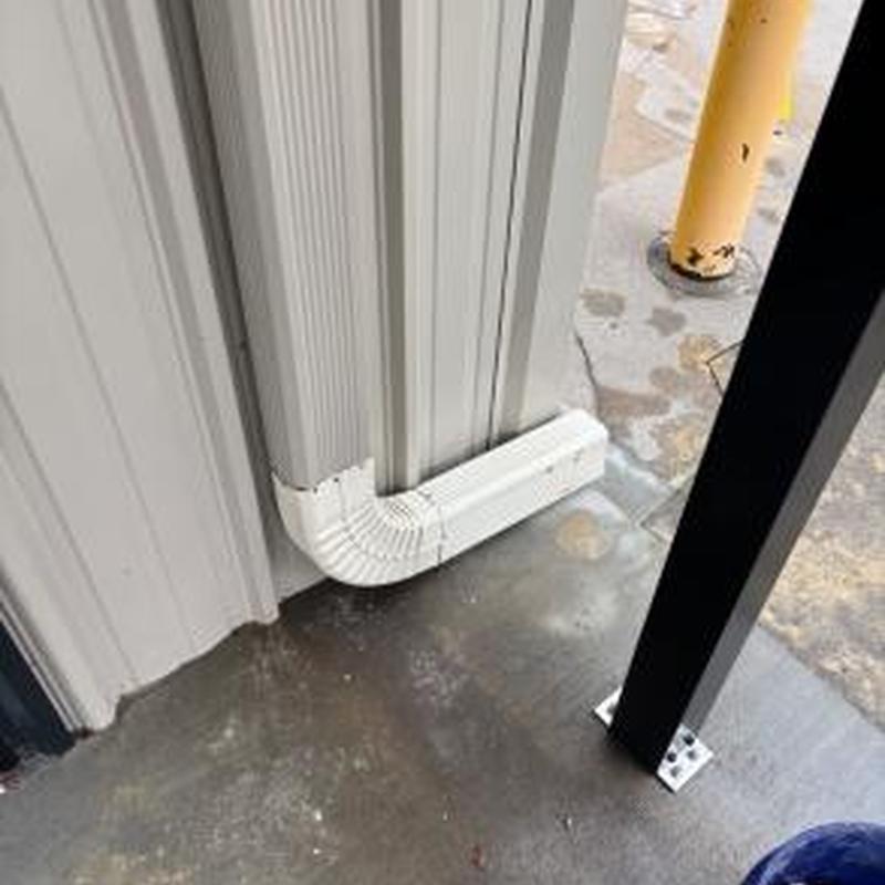 Thompson Roofing Services repaired a failed pipe boot and fixed gutter downspout issues in Lexington, NC. The team resealed the pipe boot and extended the downspouts to improve water drainage and prevent leaks around the building.