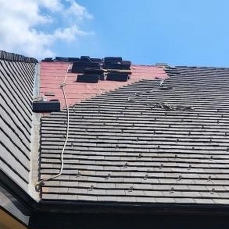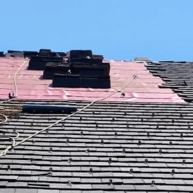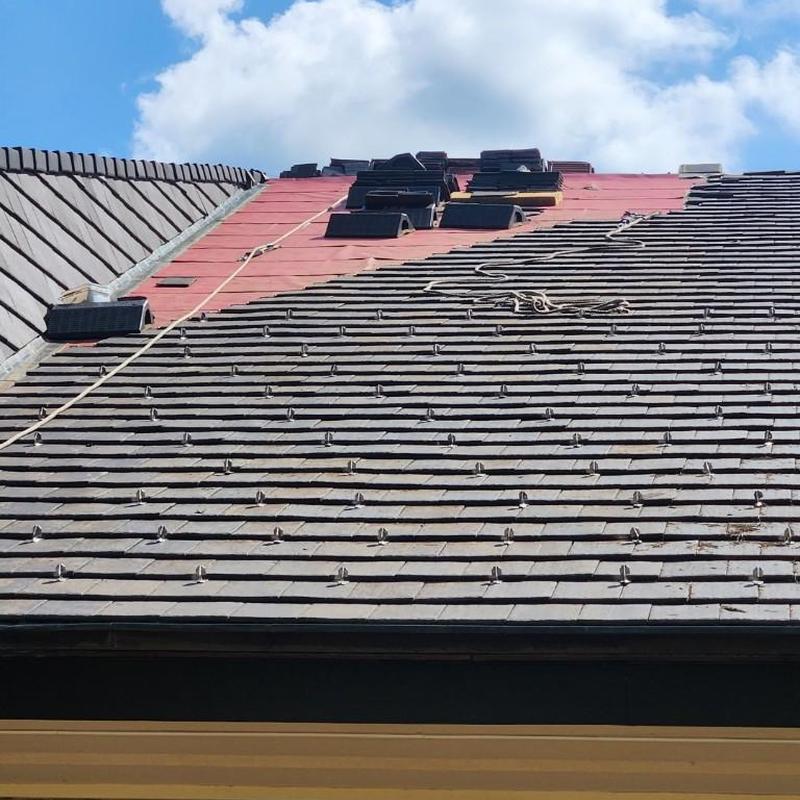Thompson Roofing Services completed slate roof repair in Greensboro, NC. The team repaired damaged slate sections, secured loose tiles, and checked for water intrusion. This service helps maintain roof integrity and prevents further structural issues.