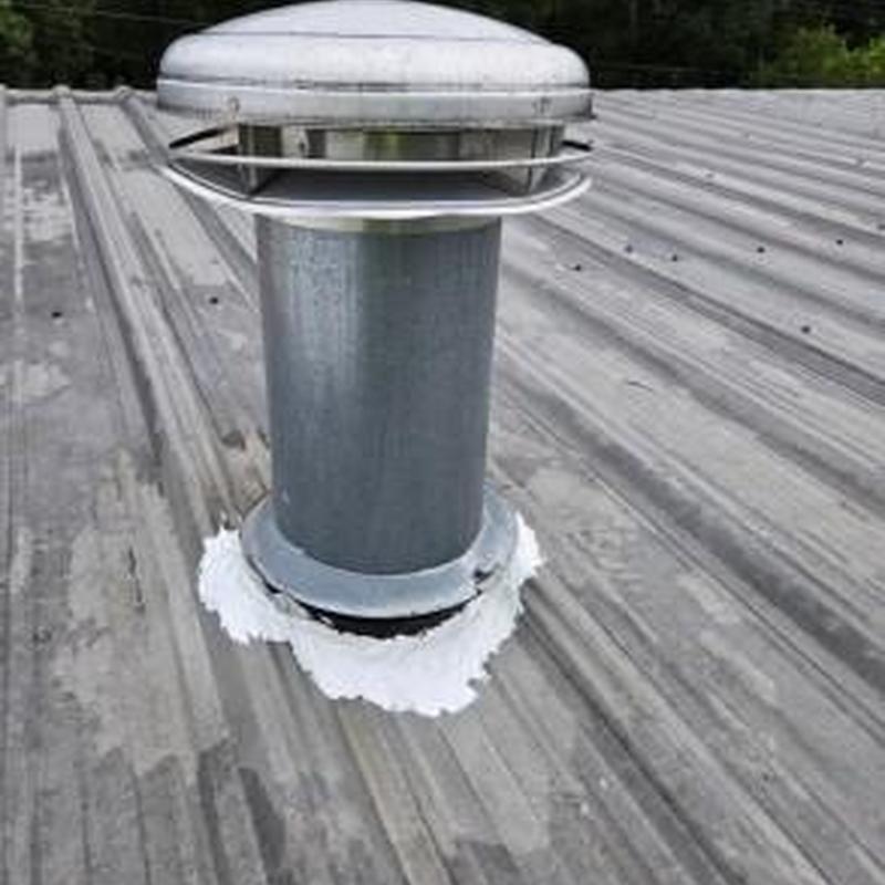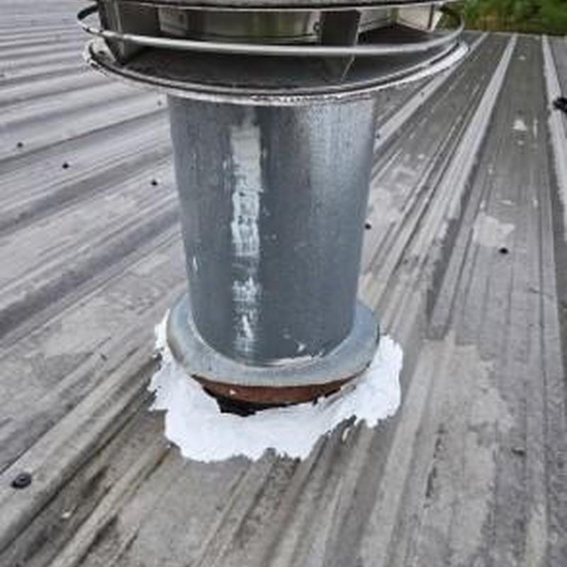 Thompson Roofing Services inspected a leaking range exhaust hood in Mebane, NC. The inspection identified failure in the sealant surrounding the hood. The team assessed the issue to determine necessary next steps for repair.