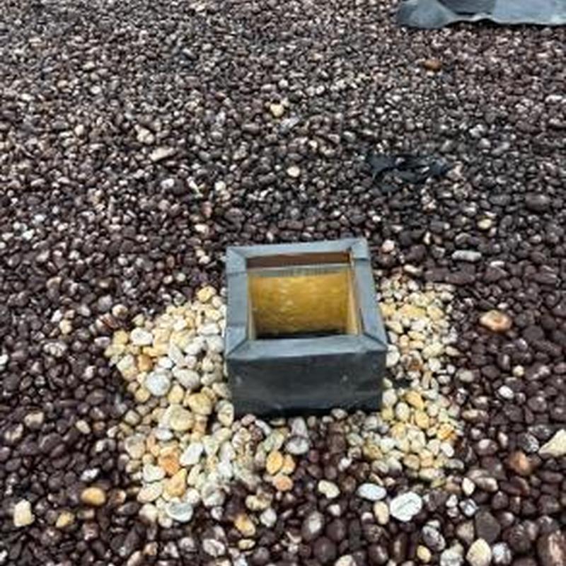 A roofing technician in Greensboro, NC inspected an EPDM roof and found holes. The technician cleared the pea gravel, repaired the damaged area, and re-installed the gravel. This process helps protect the EPDM membrane and restore roof function.