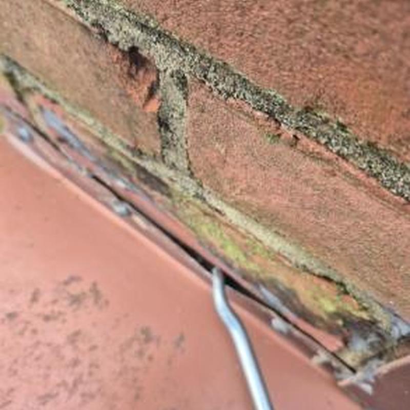 Thompson Roofing Services inspected a roof in Greensboro, NC, and identified a leak caused by faulty wall flashing along a masonry wall. The team located the issue and provided a clear assessment for repair.