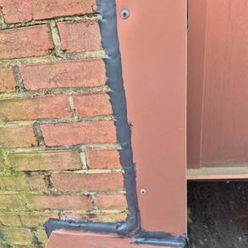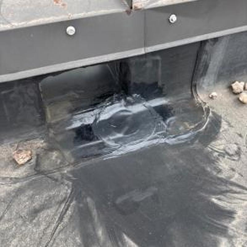 Thompson Roofing Services repaired degraded EPDM wall flashing on a roof in Greensboro, NC. Technicians removed old sealant, cleaned the surface, and applied new commercial-grade caulking to stop leaking. The rest of the roof remained in good condition.