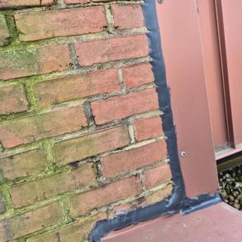 Roofing technicians in Burlington, NC inspected a leaking roof and identified damaged wall flashing and roof deck sections. They cleaned the area and applied new caulking to prevent further water intrusion. The team recommended regular inspections to monitor the condition of the wall flashing and maintain the roof’s integrity.