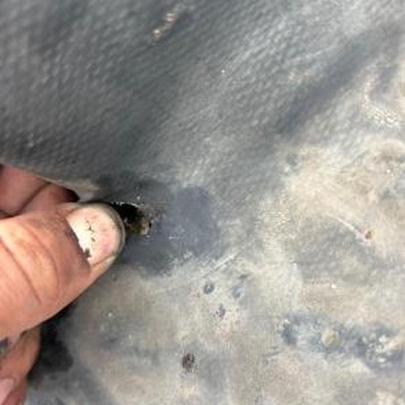 Thompson Roofing Services inspected a leaking EPDM roof in Greensboro, NC. The team identified a large puncture hole as the source of the problem. Technicians assessed the damage to provide a repair solution that addressed the membrane failure.