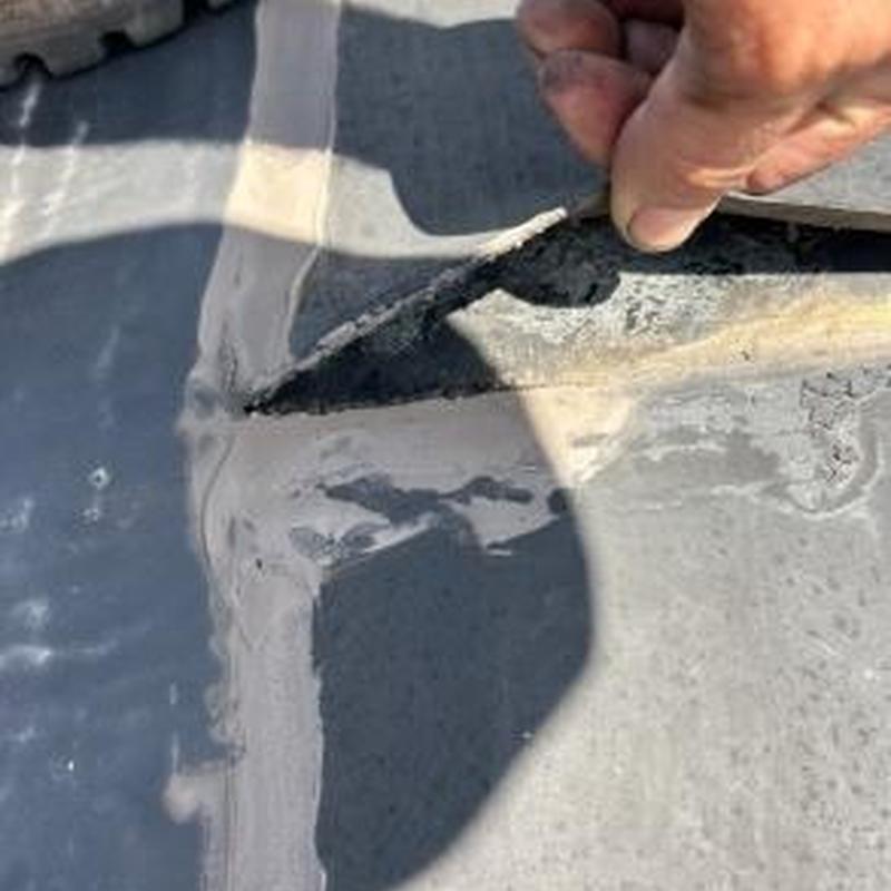 Thompson Roofing Services repaired a roof leak at a strip mall in Jamestown, North Carolina. The team found a failed seam during inspection and applied a T patch to stop the leak.