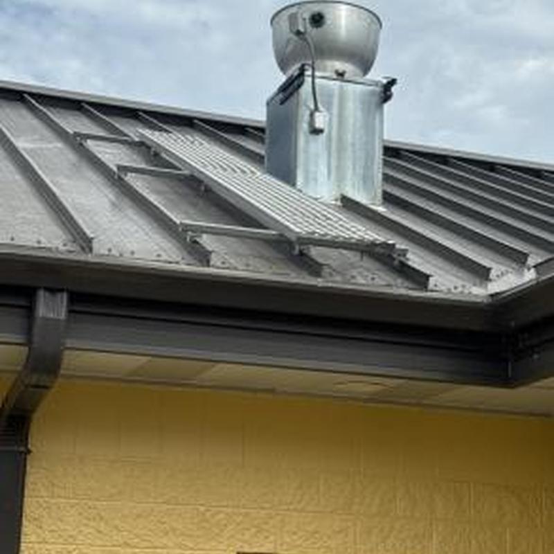 Thompson Roofing Services installed new downspouts on a metal roof in High Point, North Carolina. The team secured proper drainage to guide rainwater away from the structure. This helps reduce water buildup and protects the roof and siding from moisture damage.