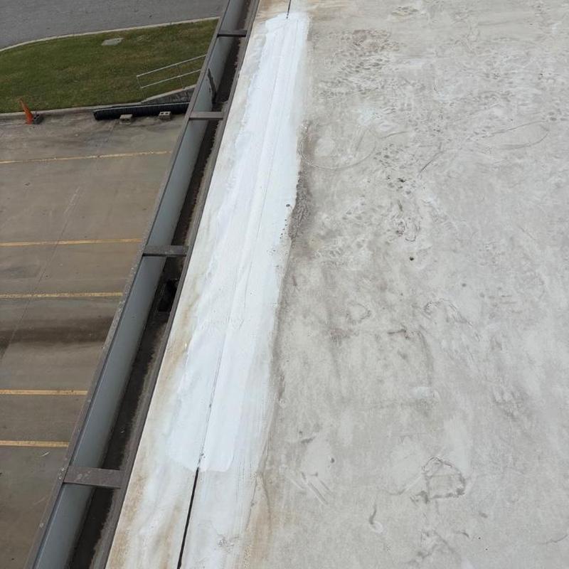 A technician in Greensboro, NC inspected a leaking roof and identified a failed wall coping seal as the source of water intrusion. The team addressed the issue to prevent further internal damage and protect the structure.