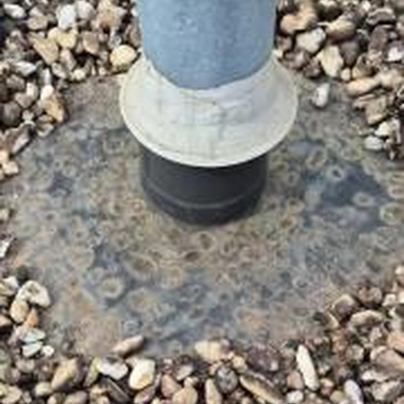 Thompson Roofing Services repaired a leaking EPDM roof in Fayetteville, NC. A technician removed roof ballast, replaced a failed pipe boot flashing, and reinstalled the ballast to complete the repair. The service ensured the roof remained protected and watertight.